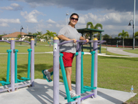 While many of Cape Coral’s parks have walking paths for people to enjoy, a few of the parks also have special fitness equipment intended to assist with strength and conditioning. All of the fitness equipment is marked with instructions for proper use and designed for adults and responsible juveniles; however, individuals with health problems should consult a physician prior to beginning a workout routine.